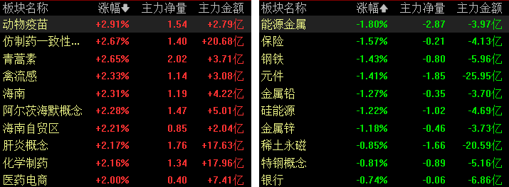 能源金属板块领跌,永杉锂业大跌超8%,远航精密、天齐锂业、永兴材料等多股下挫。
